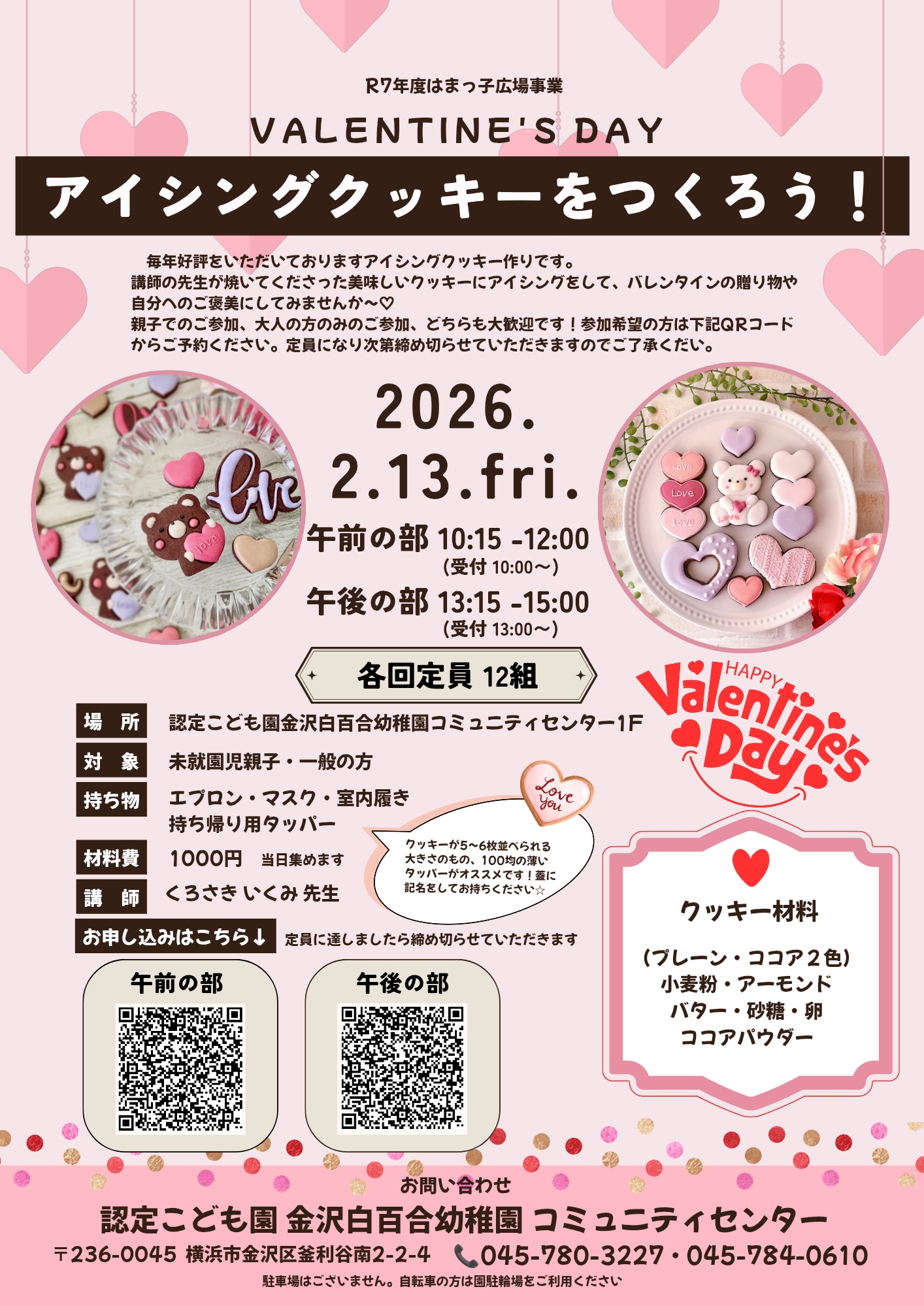 子育て支援イベント「バレンタイン クッキーをつくろう!」のお知らせです!