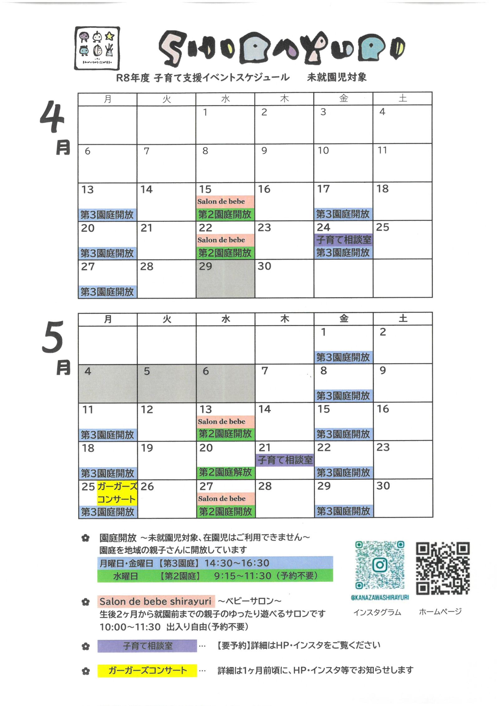 ~年間予定については、4月下旬にお知らせさせていただきます~
